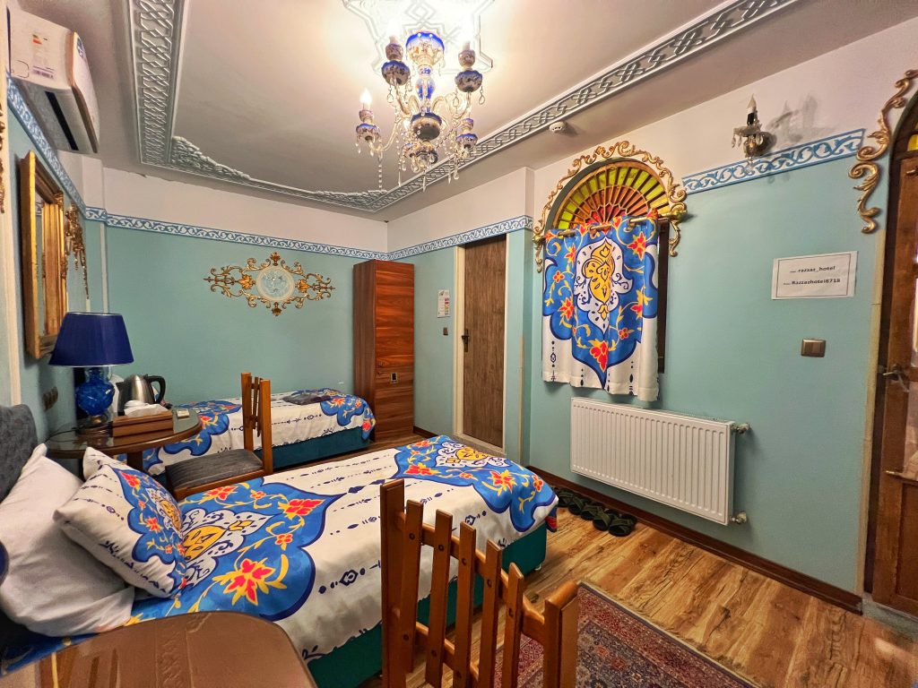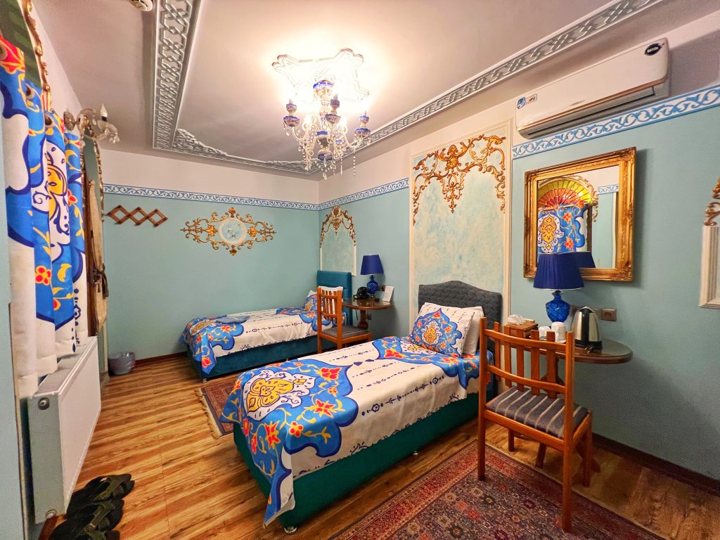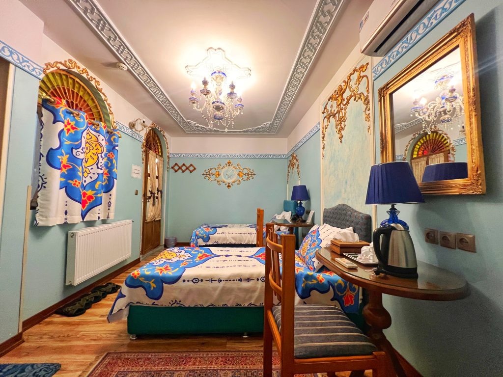 Firoozeh (Turquoise) is the name of a precious Persian gemstone, cherished by Iranians since ancient times. From the depths of history to the present day, it has been used to craft exquisite and valuable jewelry — a symbol of beauty, purity, and protection. Our Firoozeh Room, adorned in shades inspired by this treasured gem, is nestled in a quiet corner of the inner courtyard. With space for up to three guests, it offers a serene and colorful atmosphere — a place where you can spend the night surrounded by the charm and emotion of Persian artistry.